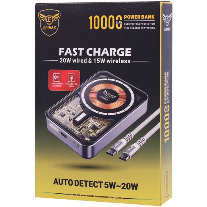 پاور بانک بی سیم فست شارژ اپی مکس EP-212 PD 20W ظرفیت 10000 میلی آمپر ساعت