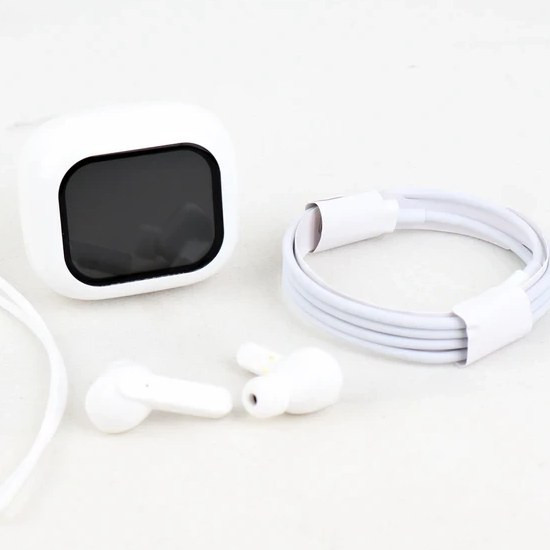 یکی از ویژگیهای برجسته ایرپاد Wisme Wt-7، وجود نمایشگر لمسی روی کیس شارژ است.