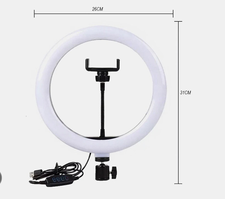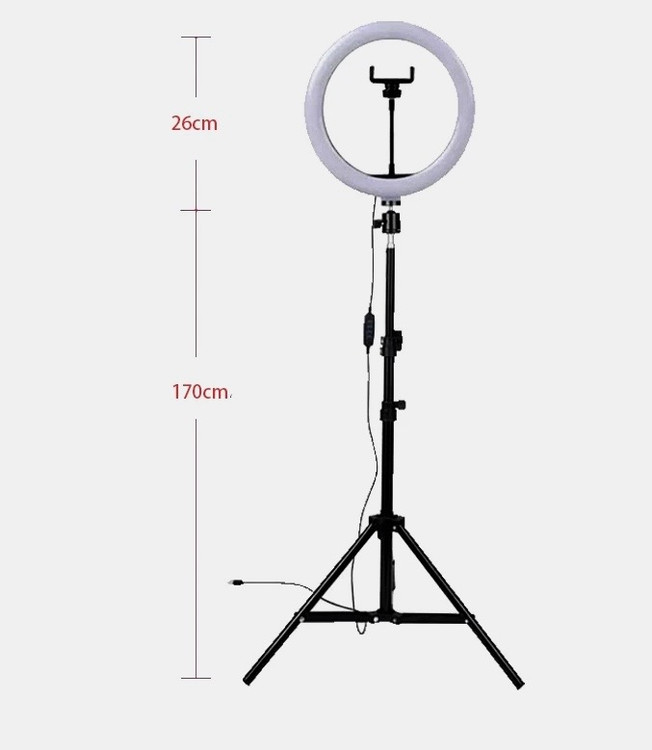 | ویژگی ها | زاویه نوری: 120 درجه طول سهپایه در حالت بسته: 65 سانتی متر قطر رینگ لایت: 26 سانتی متر قابلیت تنظیم کانال و گروبندی نور امکان نصب باتری و استفاده بدون کابل برق همراه پایه نگهدارنده گوشی، سه پایه مناسب برای برای عکاسی پرتره،تبلیغات و مدلینگ |