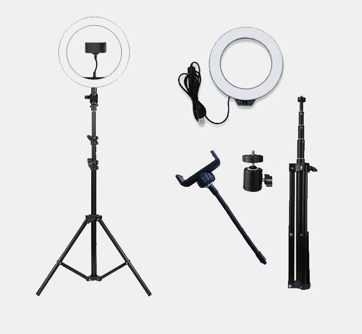 | ویژگی ها | زاویه نوری: 120 درجه طول سهپایه در حالت بسته: 65 سانتی متر قطر رینگ لایت: 26 سانتی متر قابلیت تنظیم کانال و گروبندی نور امکان نصب باتری و استفاده بدون کابل برق همراه پایه نگهدارنده گوشی، سه پایه مناسب برای برای عکاسی پرتره،تبلیغات و مدلینگ |